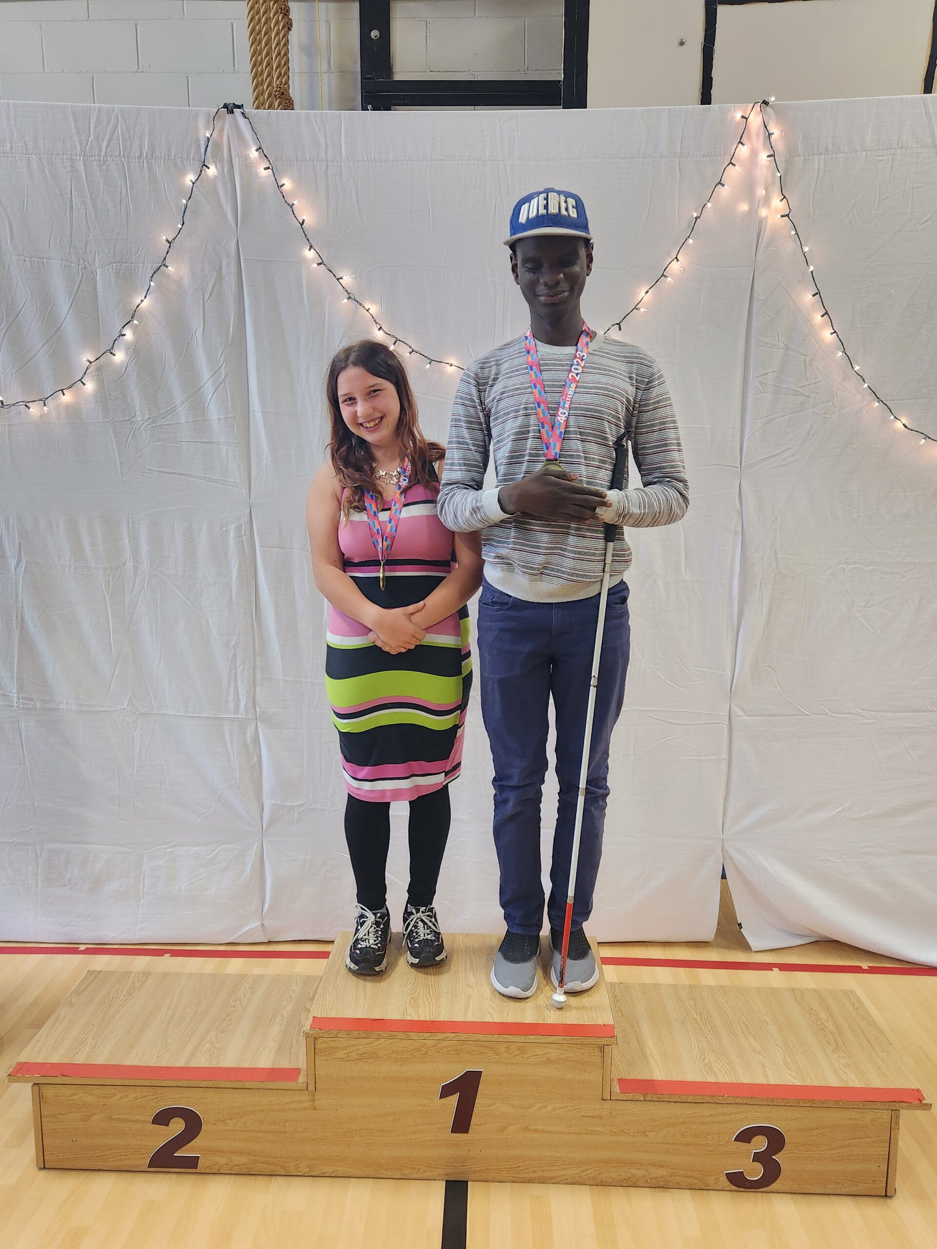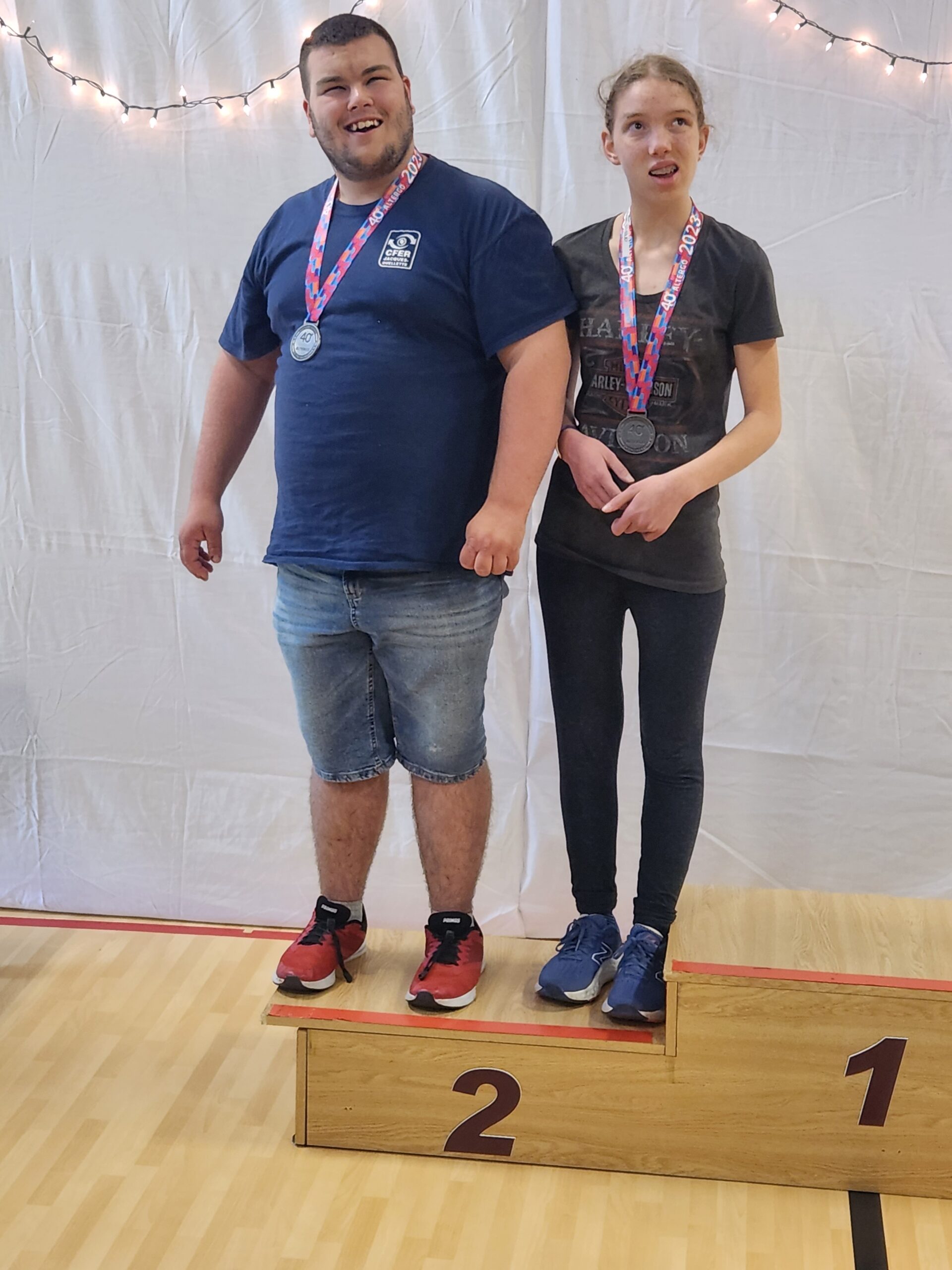 Photo d’Énola et Thierno avec leur médaille d’or