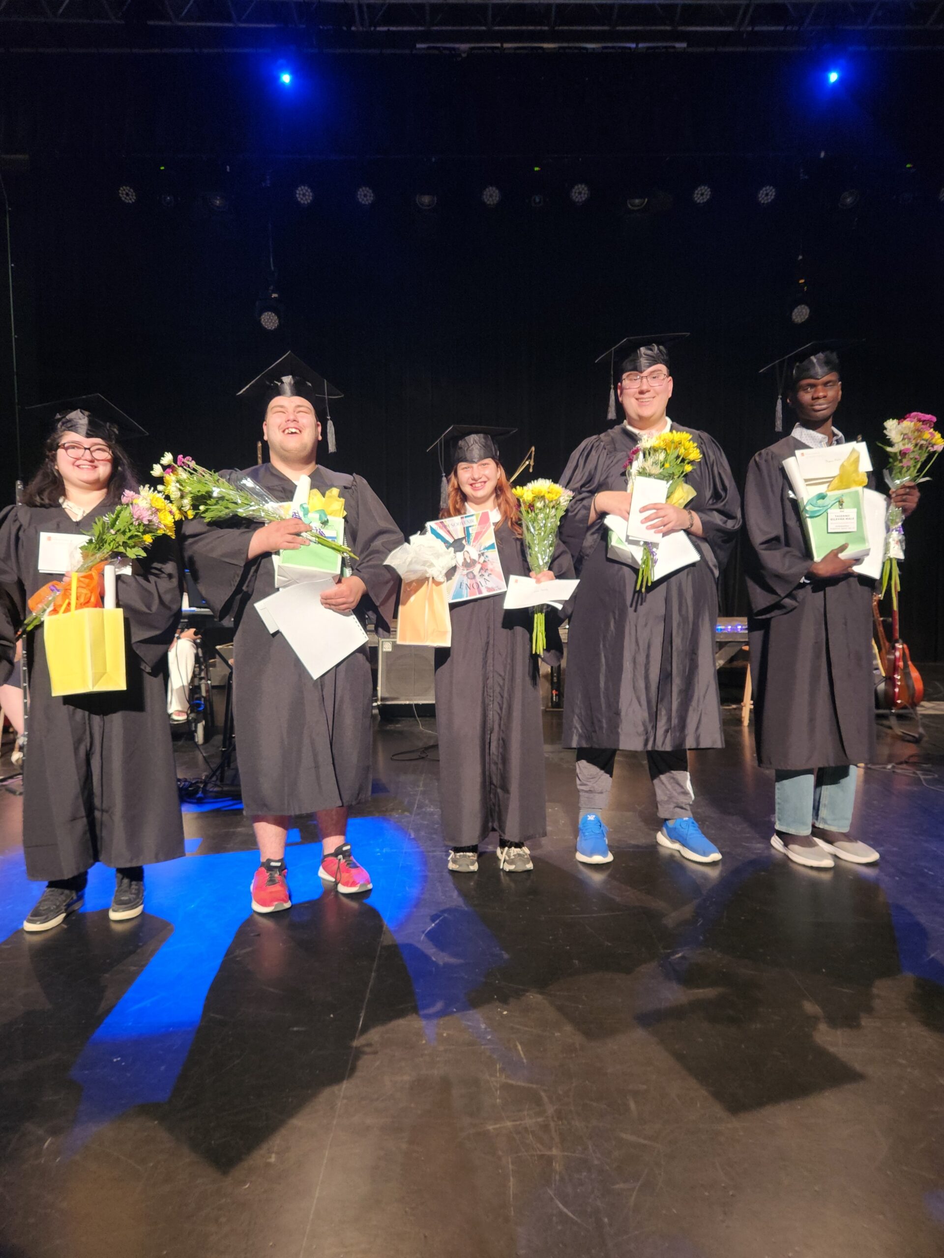Ce fut également la remise des diplômes de nos finissants. Félicitations à Lucia, Jymmy, Énola, George et Thierno pour votre parcours scolaire et votre diplôme. Nous sommes très fiers de vous!