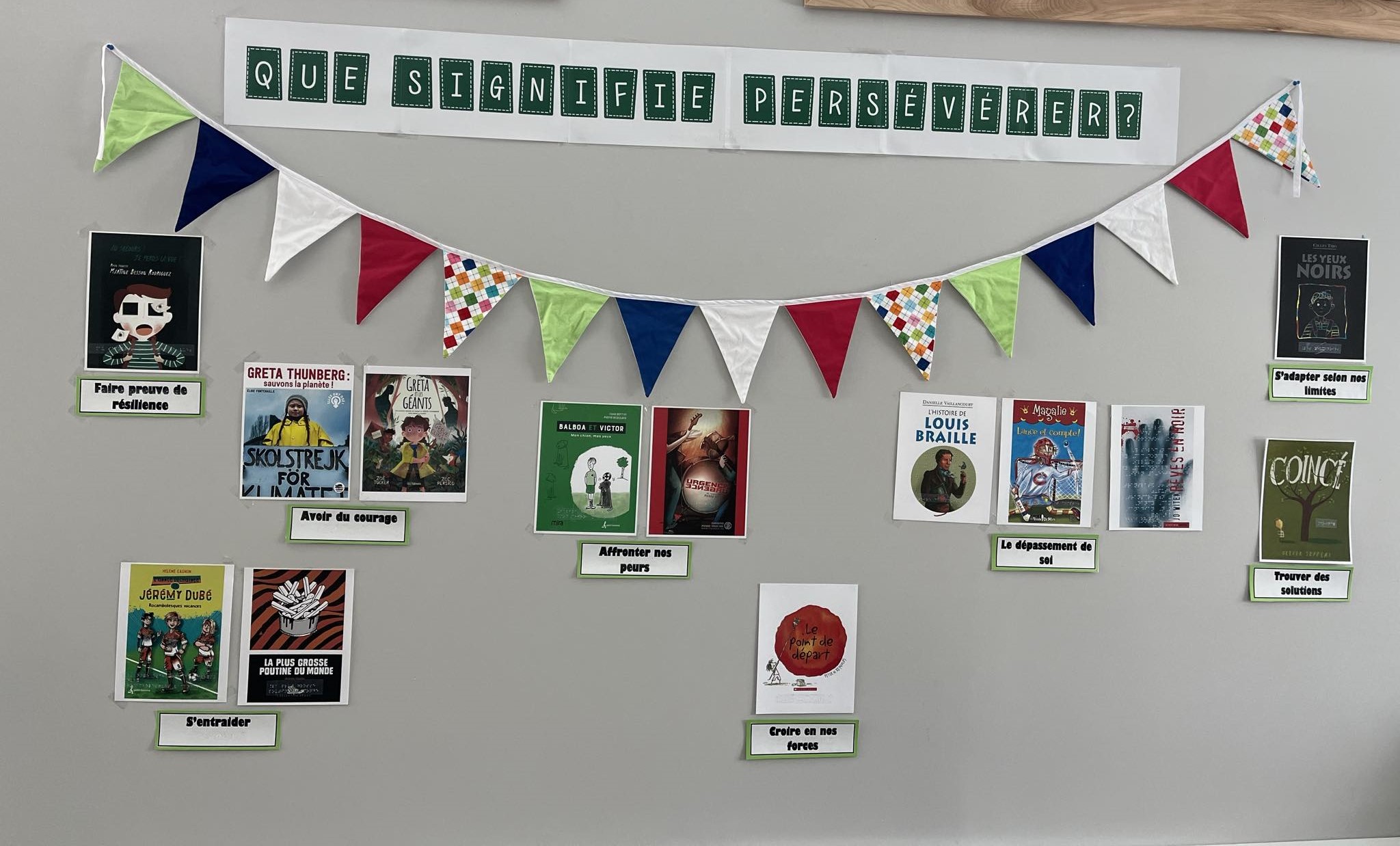 - Mur vedette de livres parlant de la persévérance et de la déficience visuelle à la bibliothèque