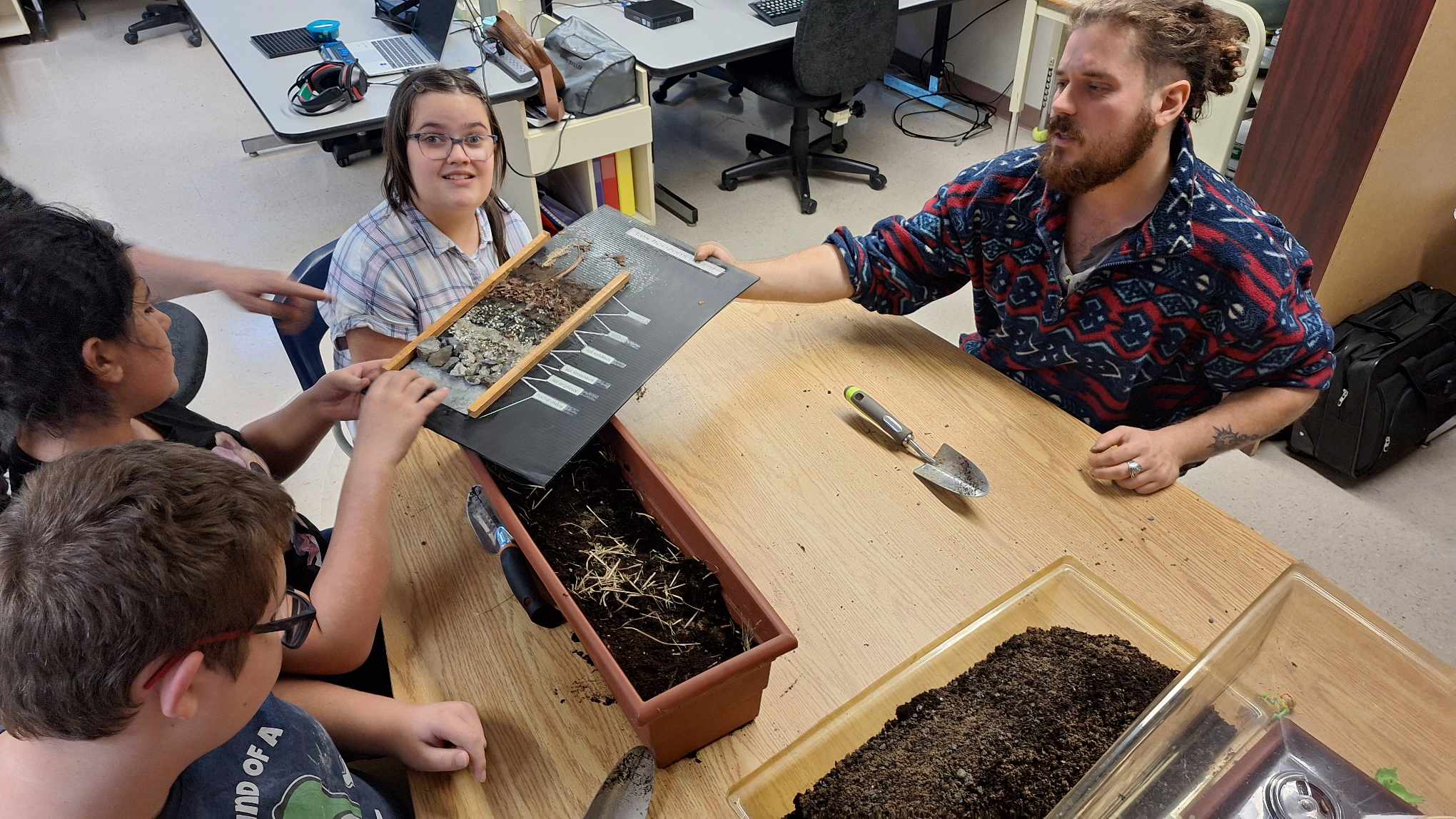 En novembre, les élèves du secondaire ont eu la chance d’accueillir un archéologue en classe. Ils ont découvert différents aspects de l’histoire du Québec en manipulant des artéfacts authentiques. Ensuite, ils se sont glissés dans la peau de véritables archéologues en apprenant les techniques de recherche de trésors enfouis.