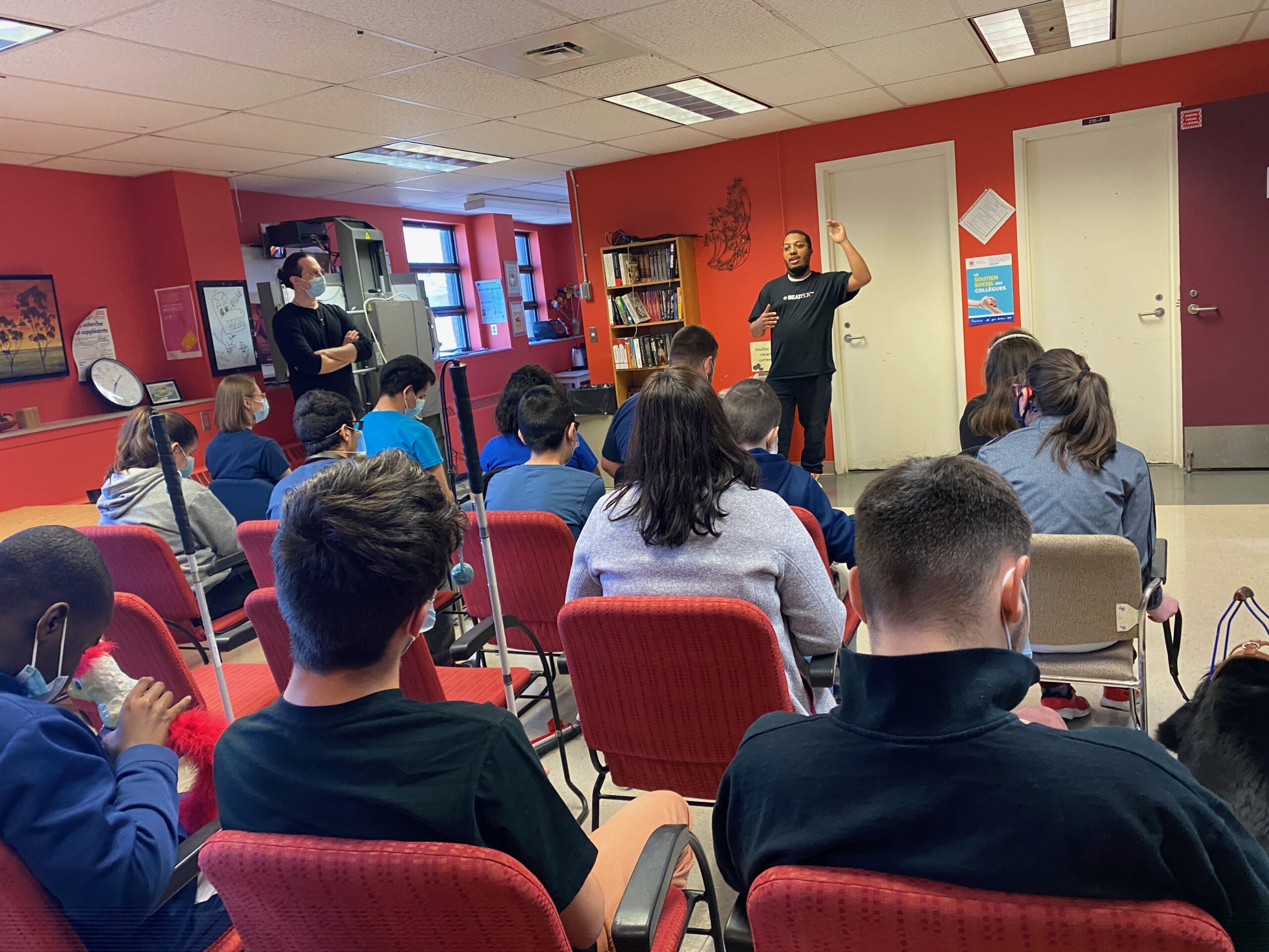 Le vendredi 6 mai 2022, l’école Jacques-Ouellette a accueilli 3 b-boys (breakers) et un « beatboxer » qui sont venus présenter leur spectacle suivi d’ateliers. Les élèves et le personnel ont grandement apprécié leur présence, c’était vraiment magique ! Un immense merci à Pascale Rabaraona et Virginie Roy pour l’organisation de cette superbe activité.