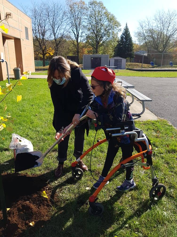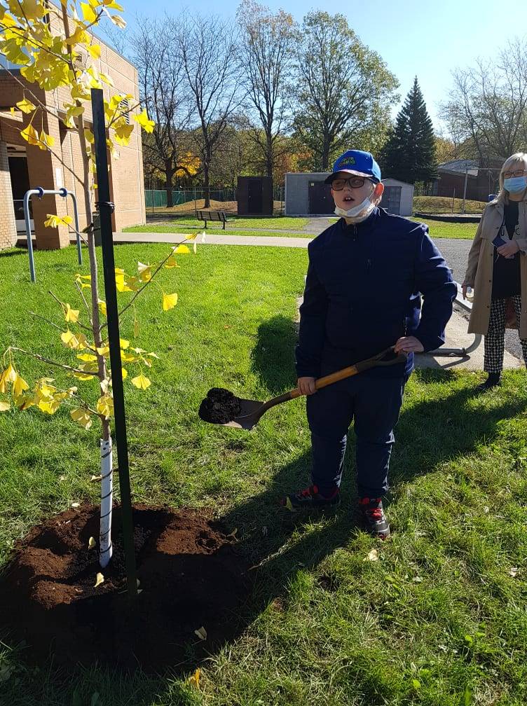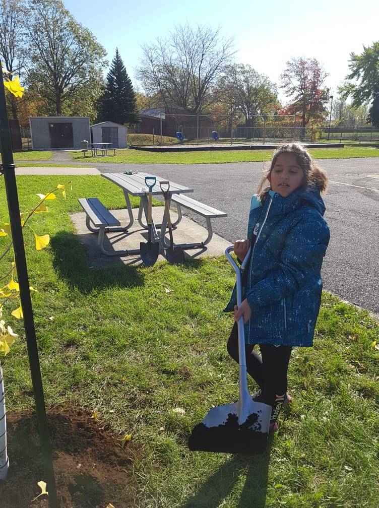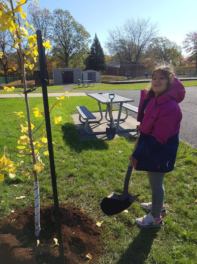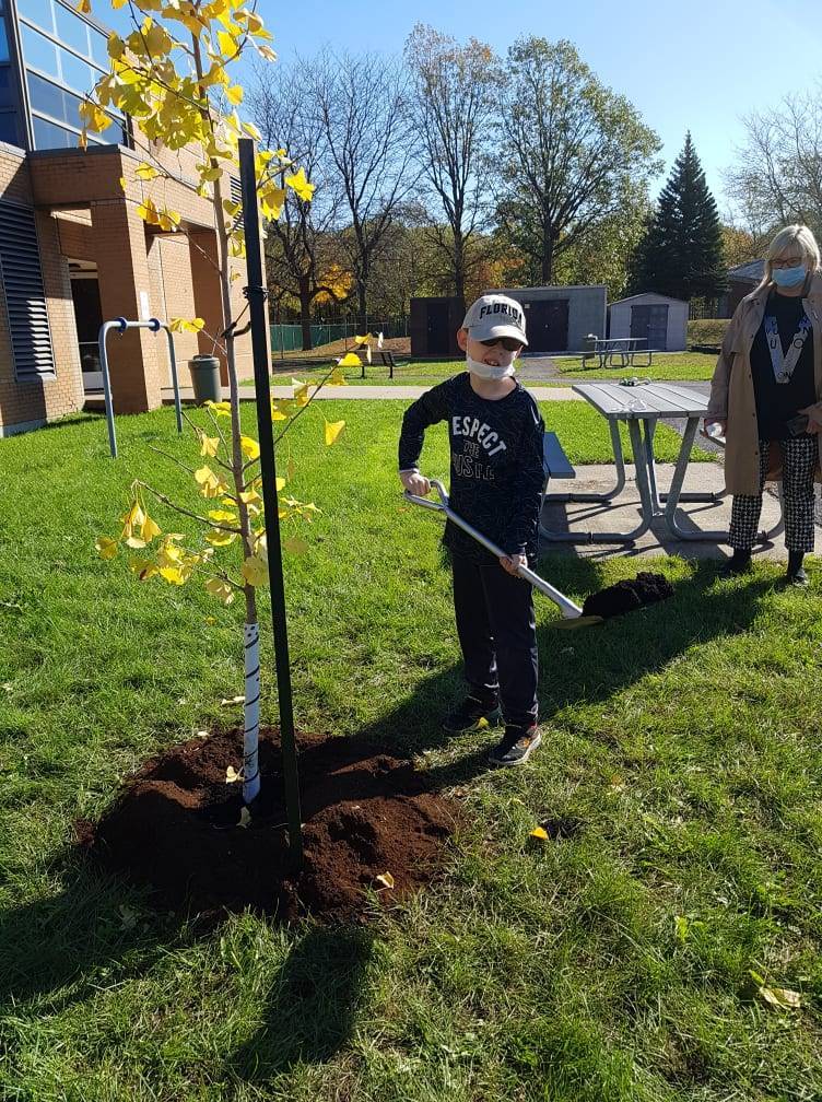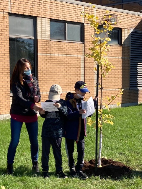 Grâce à l’Association des enseignants retraités du Québec, le groupe du 2e cycle primaire a été choisi pour planter un arbre dans la cour de récréation de l’école Jacques-Ouellette. Pour les remercier de leur grande générosité, nous leur avons composé une petite chanson que nous leur avons chanté durant la cérémonie. L’arbre planté est un « Ginko Biloba ». Les élèves ont eu la chance, à tour de rôle, de participer à la pelleté de terre lors de la plantation de l’arbre.
